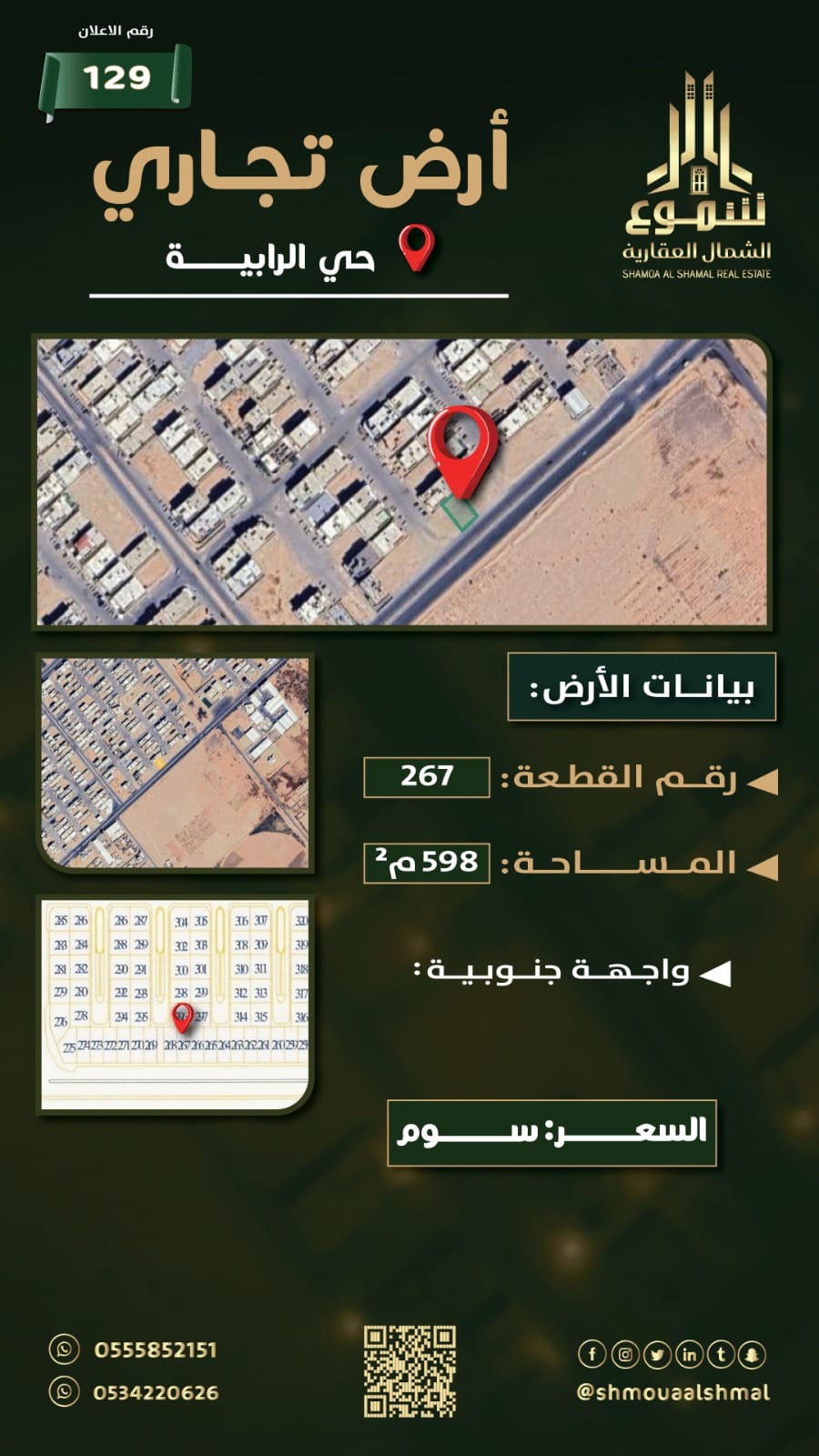 ارض تجاري بحي الرابية رقم 297 مساحة 598م2