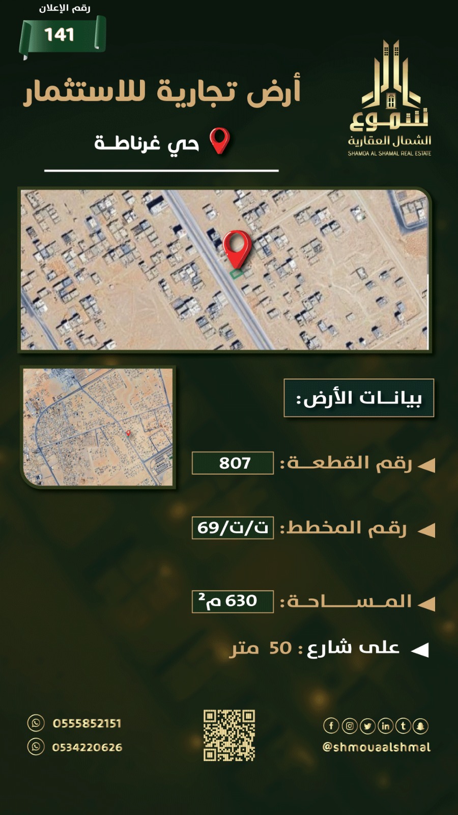 فرصة استثمارية مميزة لامتلاك أرض تجارية في حي غرناطة بموقع مناسب للأعمال والمشاريع الخدمية. الأرض خيار مثالي لإقامة محلات تجارية، معارض، أو مشروع استثماري بعائد واعد، مع قابلية عالية للتطوير حسب احتياجك وخطة مشروعك.