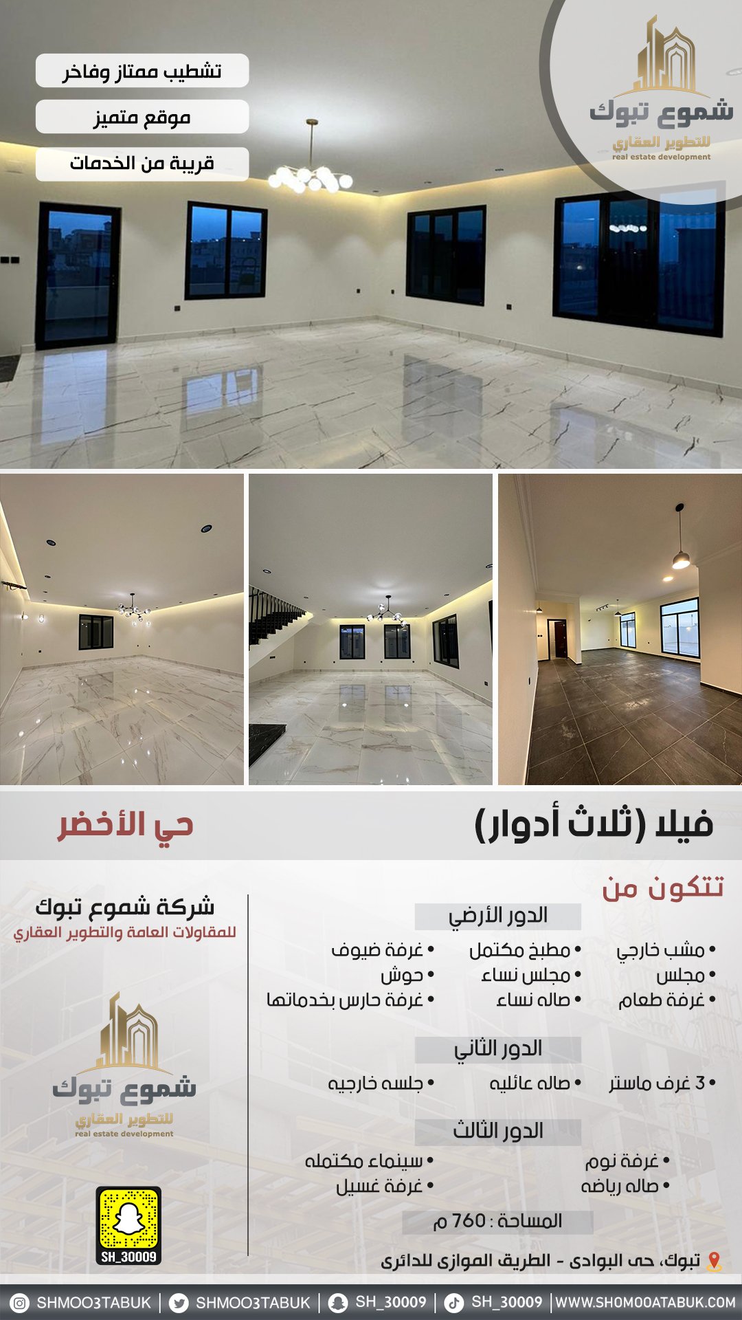 فيلا أرض كاملة حي الأخضر – تبوك