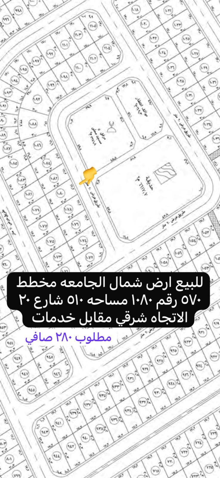 للبيع شمال الجامعة قطعه رقم 1080 مخطط 570