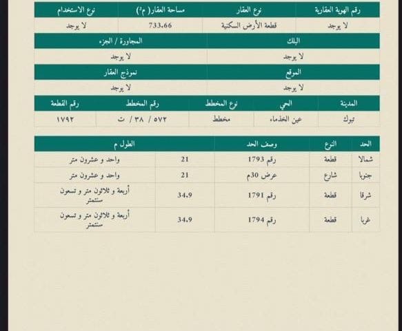 للبيع تجاري قطعه رقم 1792 بحي العين جنوبيه شارع 30 متر